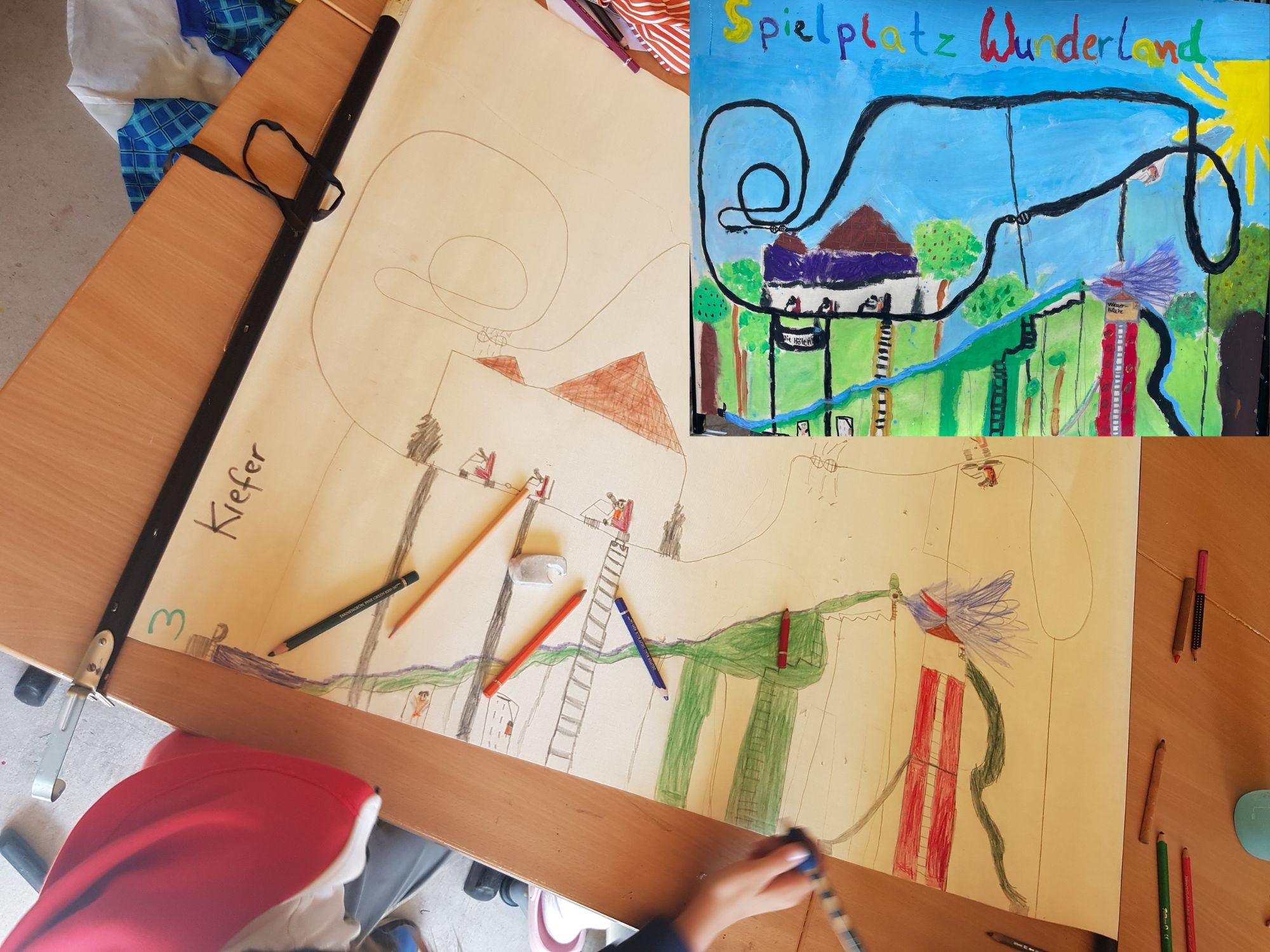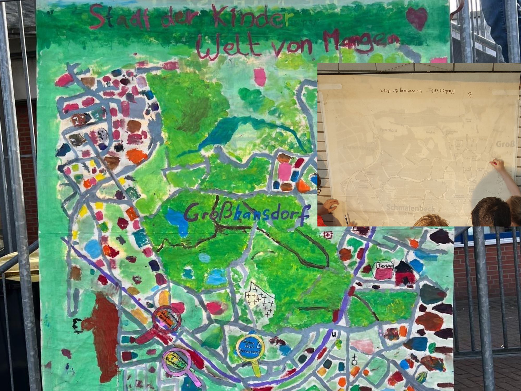 Das Projekt konnte mit den Kindern weitestgehend abgeschlossen werden. Was zum Schluss noch fehlte, war eine Beschriftung der Landkarte und der Fotokollage.