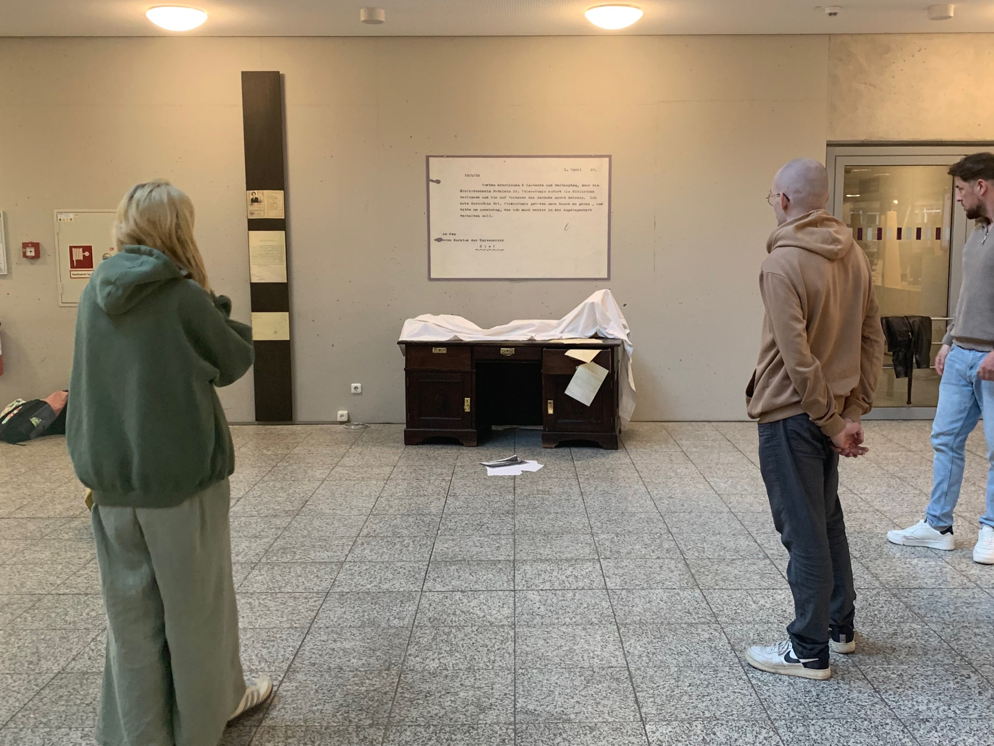 Die Audioinstallation ist bis zum 7. September 2025 im Foyer der Universitätsbibliothek zu sehen und zu hören. Anschließend soll sie ins Zentrum zur Geschichte Kiels im 20. Jahrhundert umziehen.