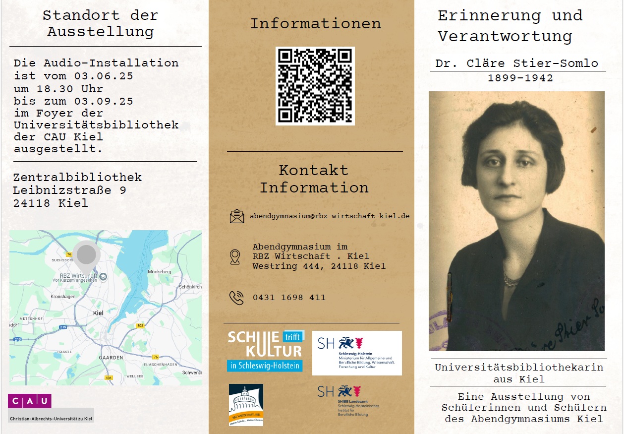 Teilnehmende des Abendgymnasiums haben einen Flyer zu Cläre Stier-Somlo und zur Audioinstallation erstellt.