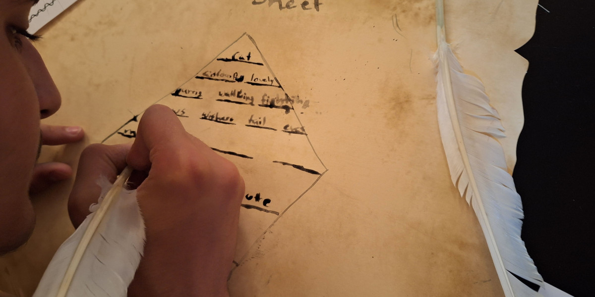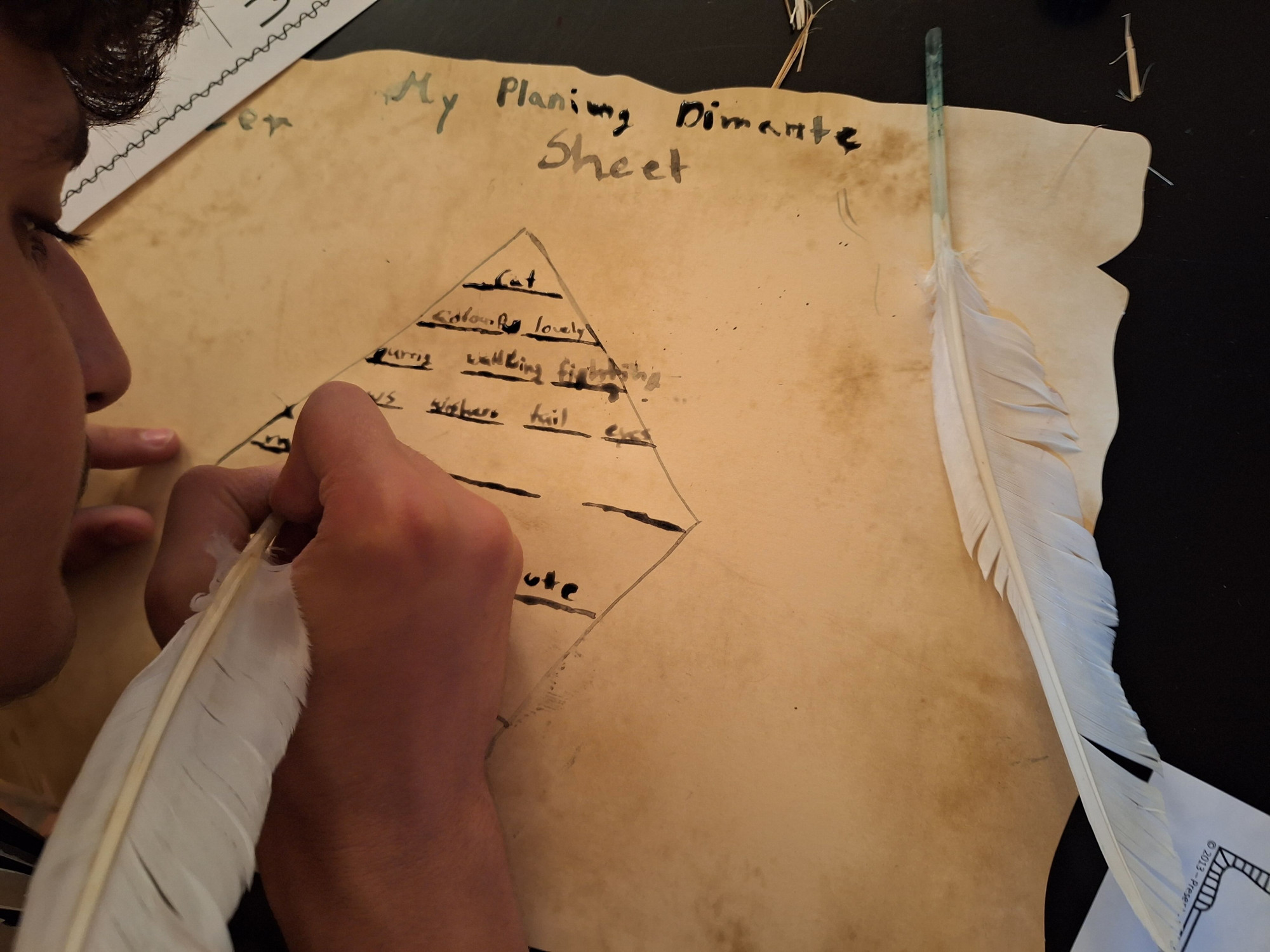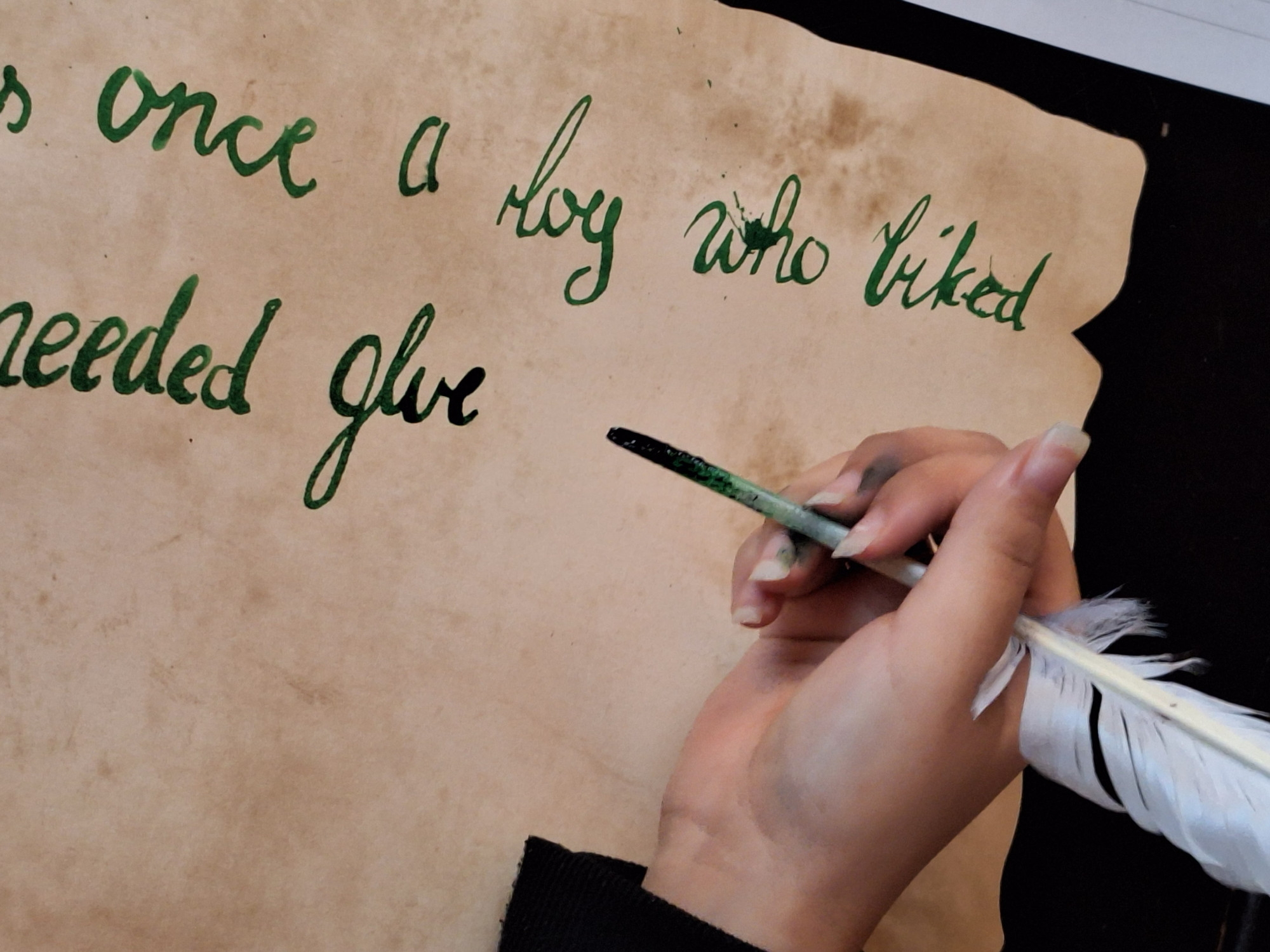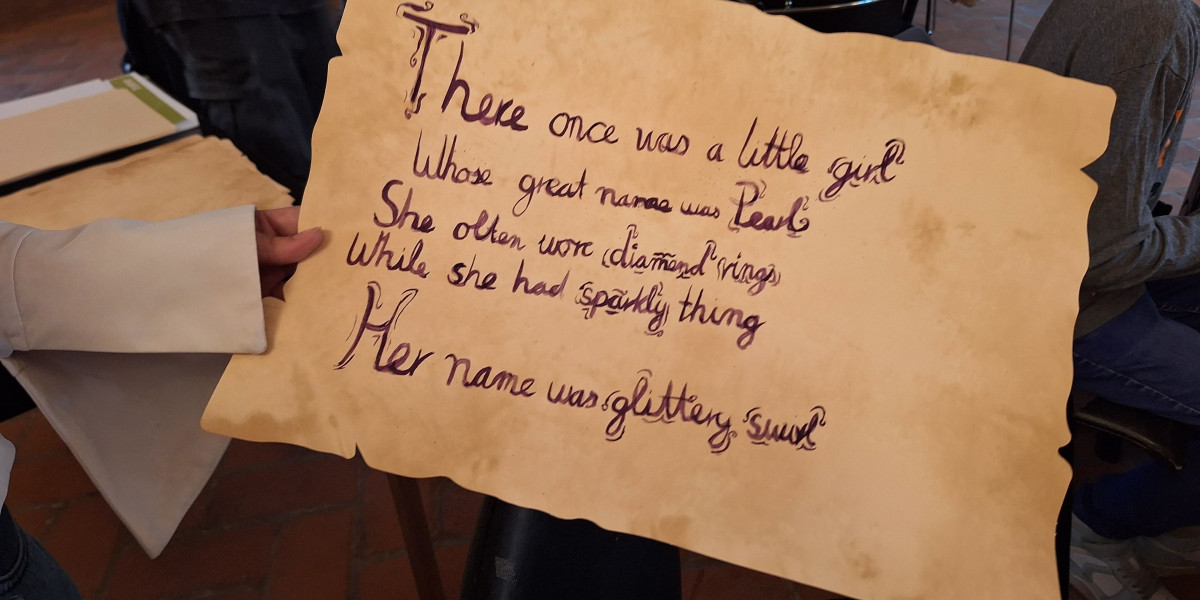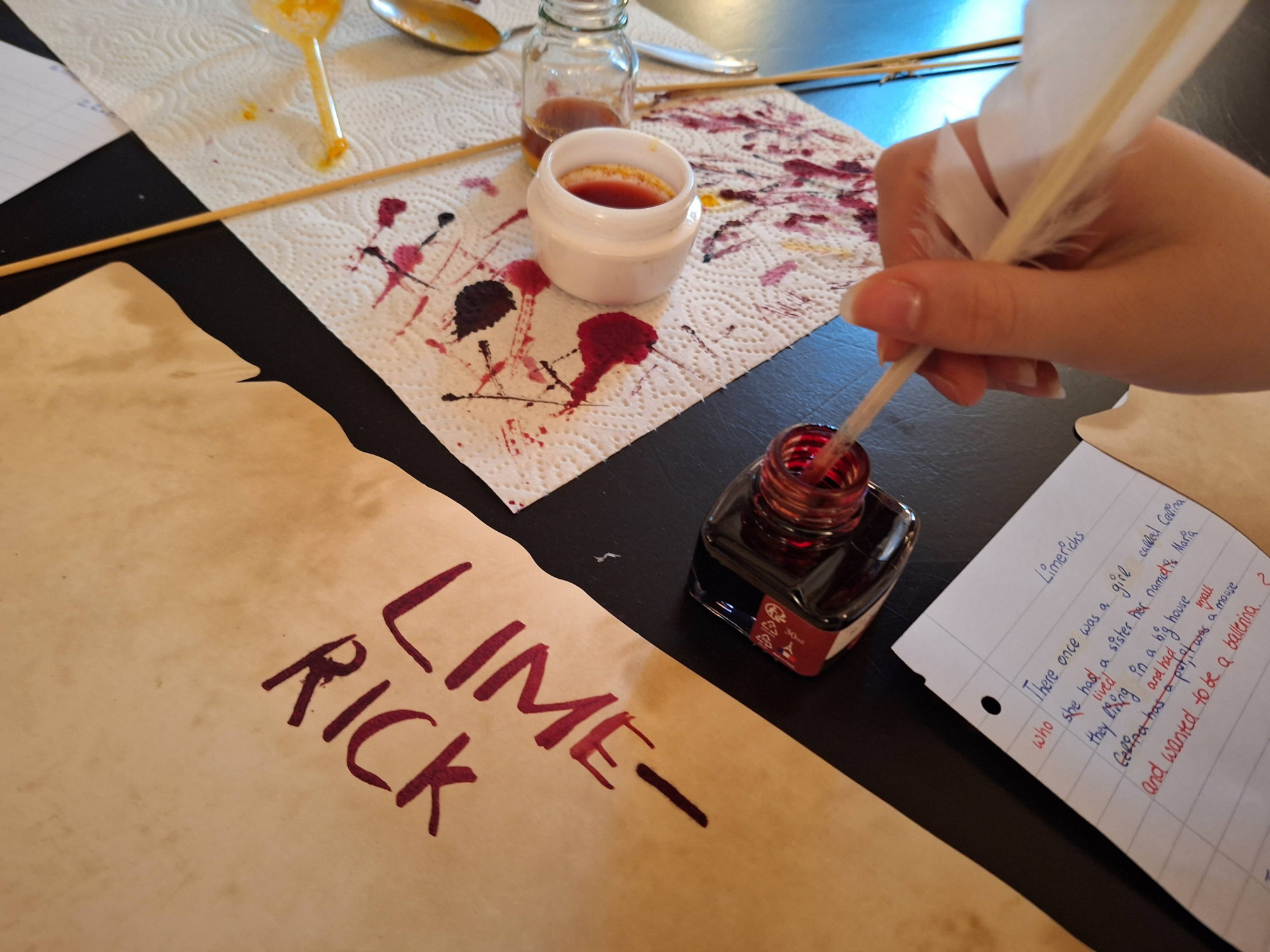 Den Abschluss bildete das Schreiben der Limericks auf Urkundenpapier. Als Vorbild galten die am Tag zuvor gesehenen kalligraphisch gestalteten Originaldokumente aus dem Stadtarchiv.”