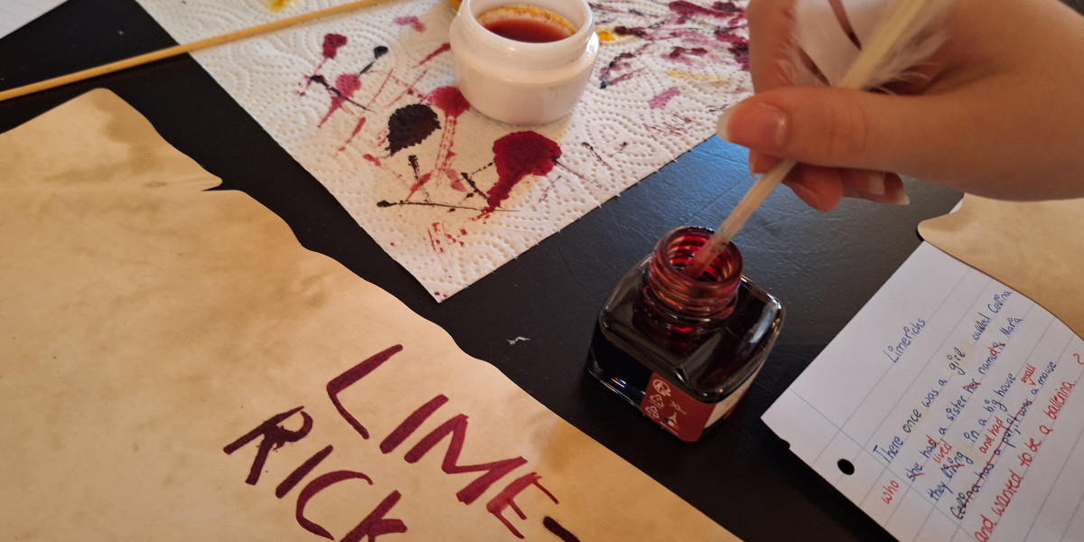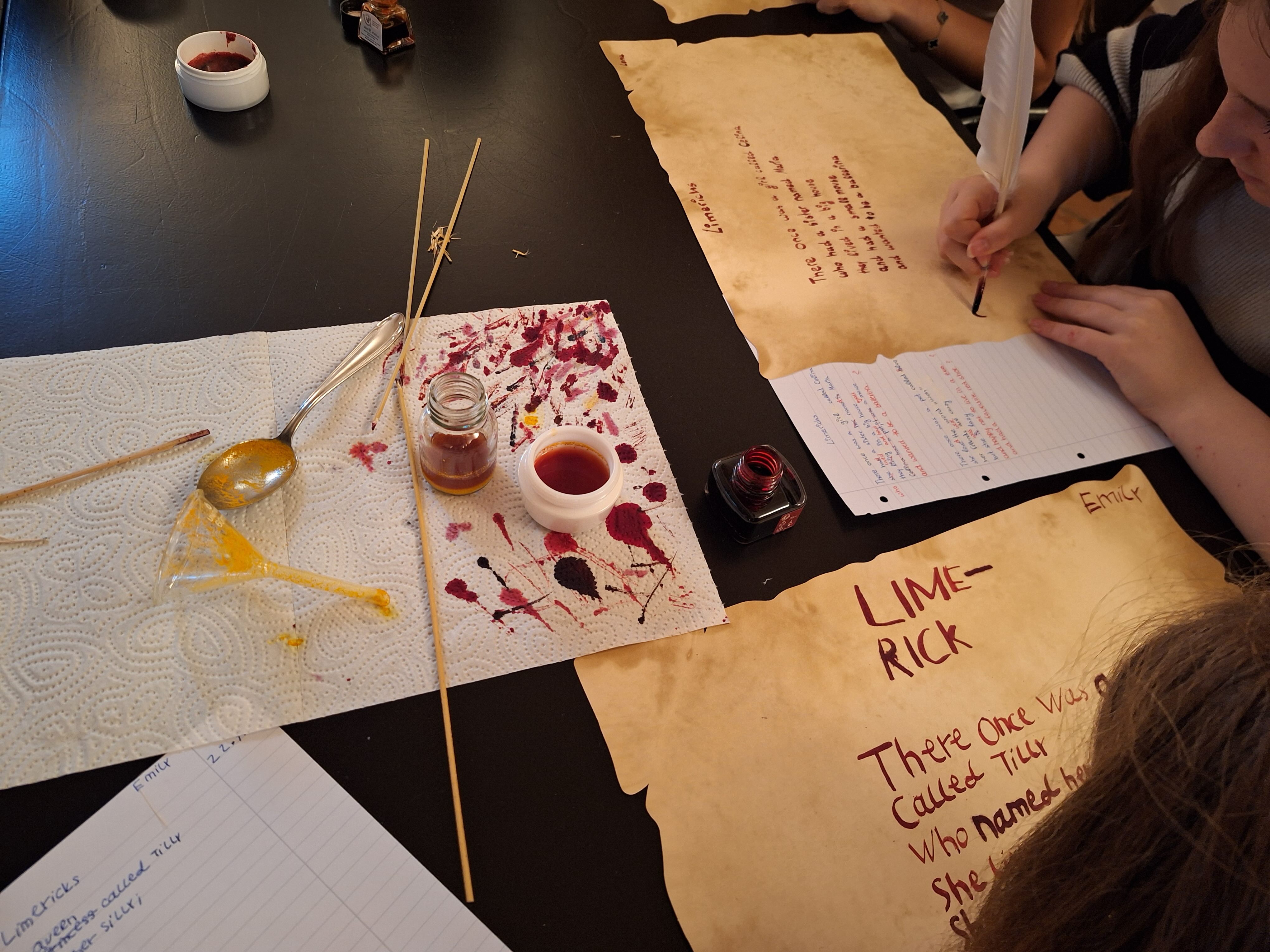 Zurück in der Schule bereitete die Klasse eigene englische Limericks vor, die an Folgetag mit Feder und Tinte abgeschrieben werden sollten.