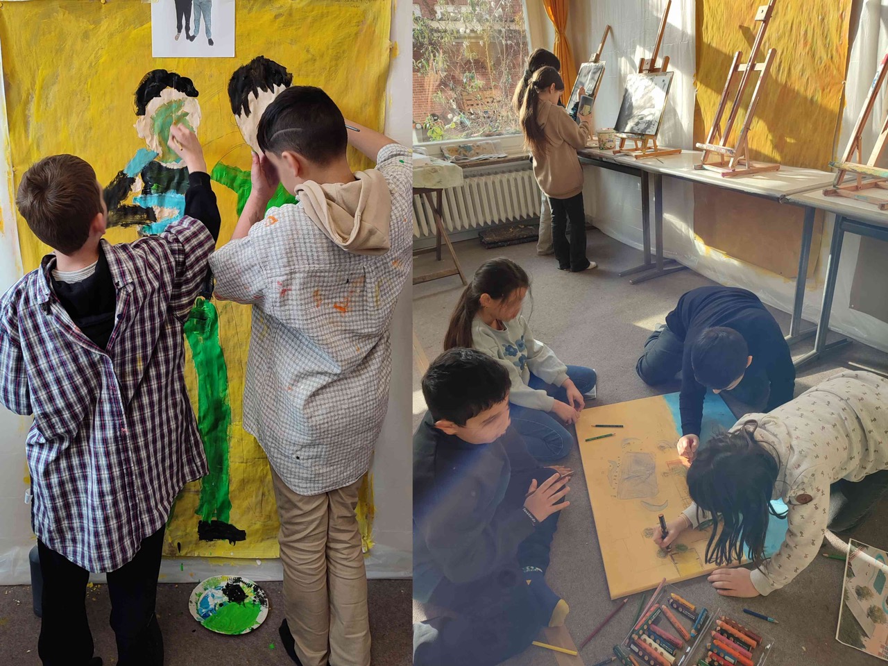 An den übrigen Atelierzeiten arbeitete die Künstlerin an ihren eigenen Bildern. Die Kinder konnten an den Tagen in den Pausen kommen, selber Malen und auch den Entstehungsprozess der Werke der Künstlerin direkt beobachten, Fragen stellen und so einen authentischen Einblick in die Arbeitsweise einer Künstlerin erhalten. Dieser Aspekt stellte eine besondere Qualität des Projekts dar, da Kunstschaffen nicht abstrakt vermittelt, sondern konkret erfahrbar wurde.