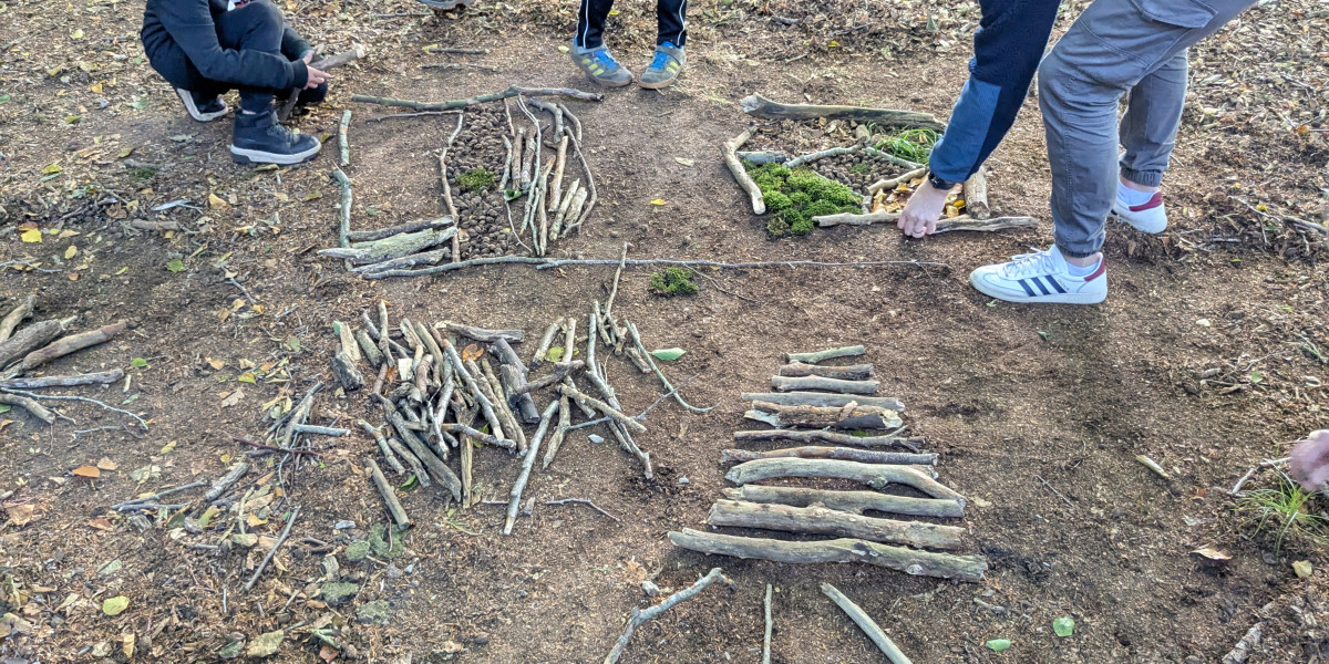 Am Nachmittag des letzten Tags der Projektwoche waren die Familien der Schüler*innen in den Schulwald eingeladen. Gemeinsam mit den Schüler*innen schärften die Besucher*innen ihre sinnlichen Forscherinstrumente, nämlich ihr Hören, Fühlen, Riechen und Sehen. Danach zeigten die Schüler*innen ihren Familien ungewöhnliche Perspektiven und führten sie blind zu spannenden Tasterlebnisse. So eingestimmt sahen die Besucher*innen eine kurze Präsentation der entstandenen Geschichten. Abschließend konnten sie unterschiedliche interaktive Angebote wahrnehmen, die von den Schüler*innen angeleitet wurden (Forscherbuchausstellung, Naturmuster legen, improvisierte 1-Minuten Geschichten zu drei gewählten Begriffen lauschen, Führung an besondere Orte im Schulwald). Der Nachmittag endete wie er begann mit allen Teilnehmenden im Kreis stehend. Die Schüler*innen bedankten und verabschiedeten sich vom Schulwald, mit dem sie eine intensive Woche verbracht hatten.