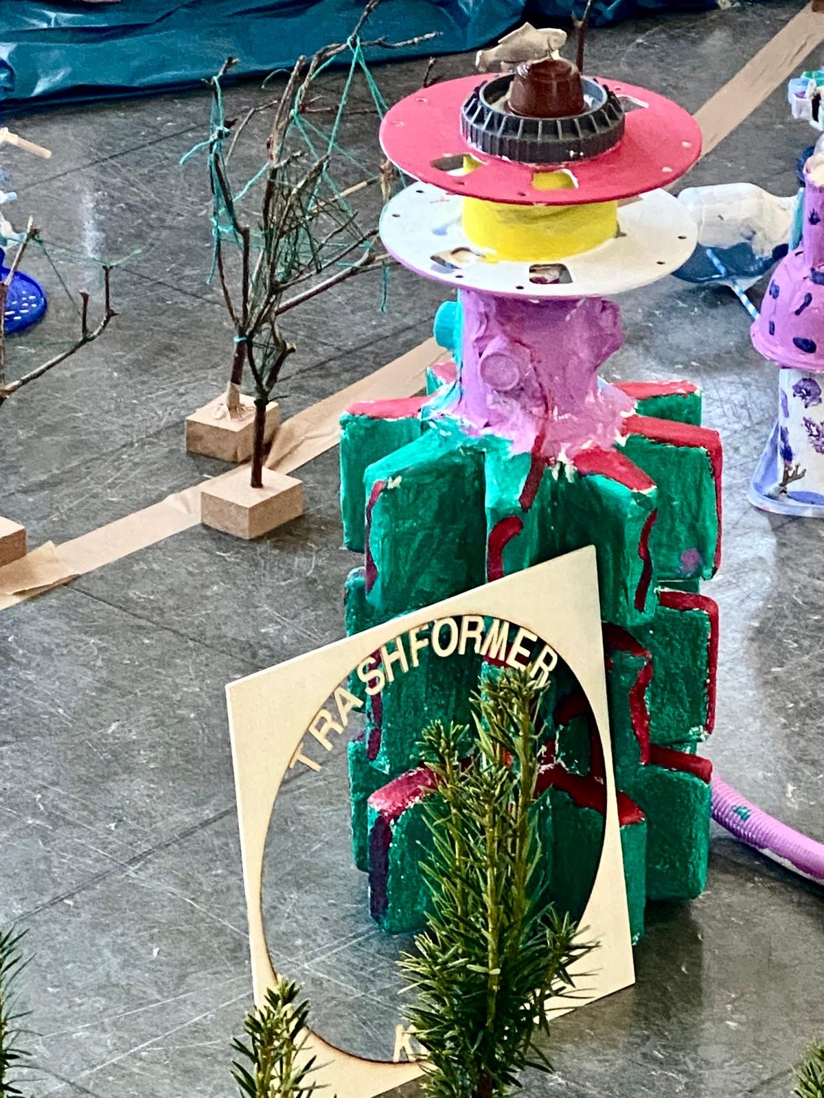 6. Tag: Fertigstellen der Bäume und Aufstellung der Stadt im Musikraum.